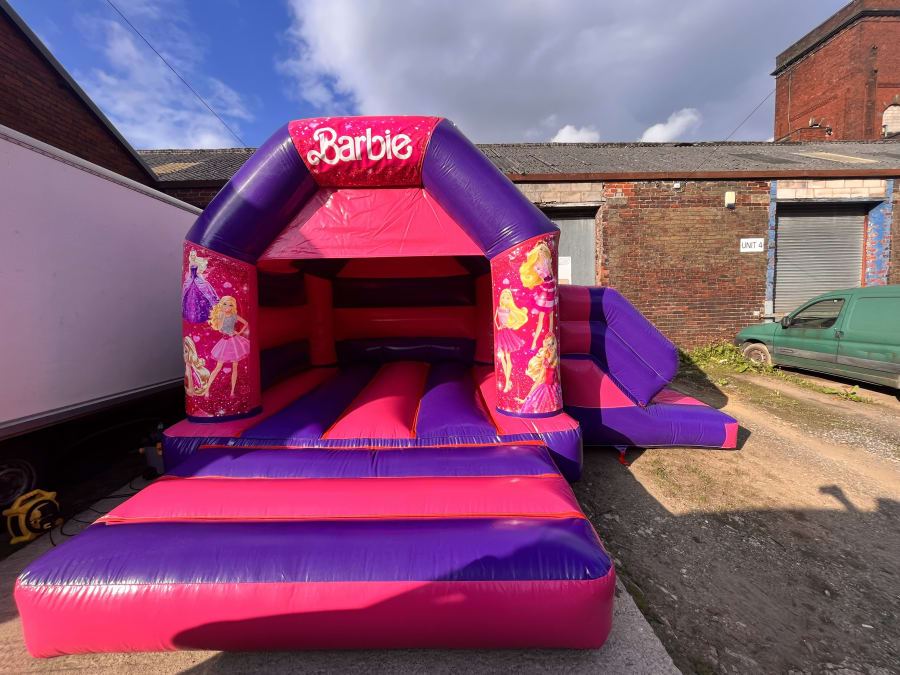 Barbie Bouncy Castle with Slide hire in Manchester, Bolton, Rochdale, Oldham and Bury.
