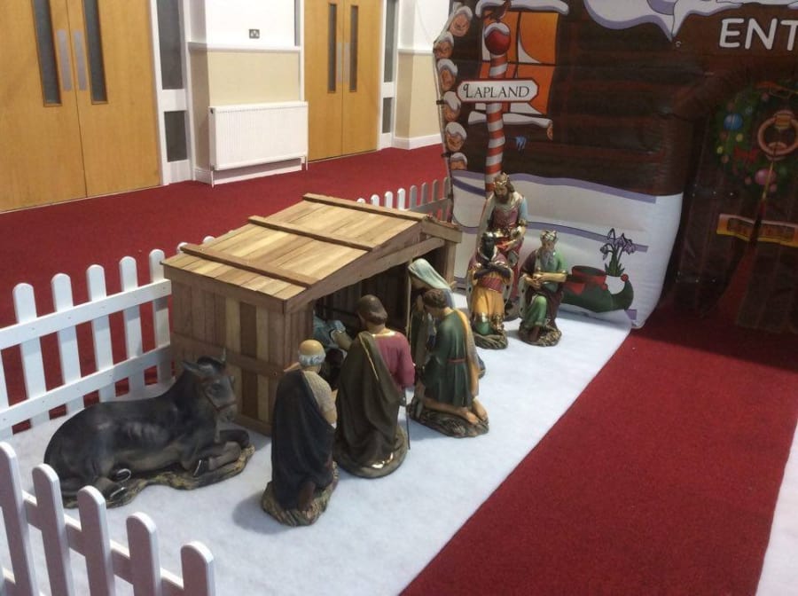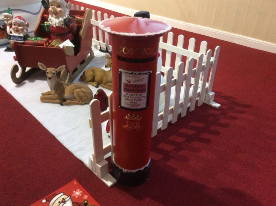 On the outside you will see our beautiful nativity scene, set on a bed of snow and surrounded by picket fencing, which includes baby Jesus in his crib, a large sleigh full of presents, a snow covered working street lamp, a cheeky elf and other Christmas themed items. There is even a postbox for the children to post their letters to Santa.