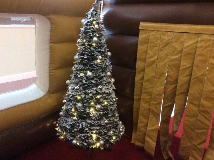 On the inside, apart from Santa's giant throne, you will find boxes of presents and a lovely, bright Christmas tree.