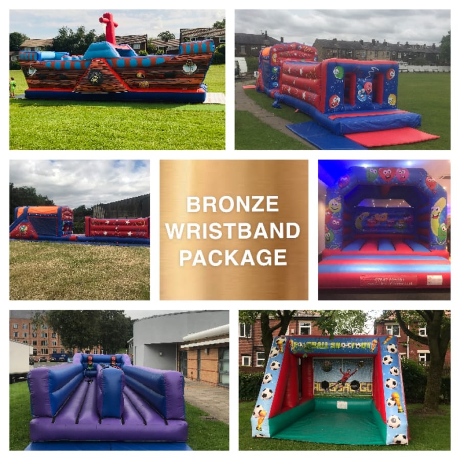 Our bronze wristband package is one we would recommend for most schools first trying this method for their school fairs. With enough inflatables to keep all the children entertained and at an amazing price, this package is a guaranteed hit.